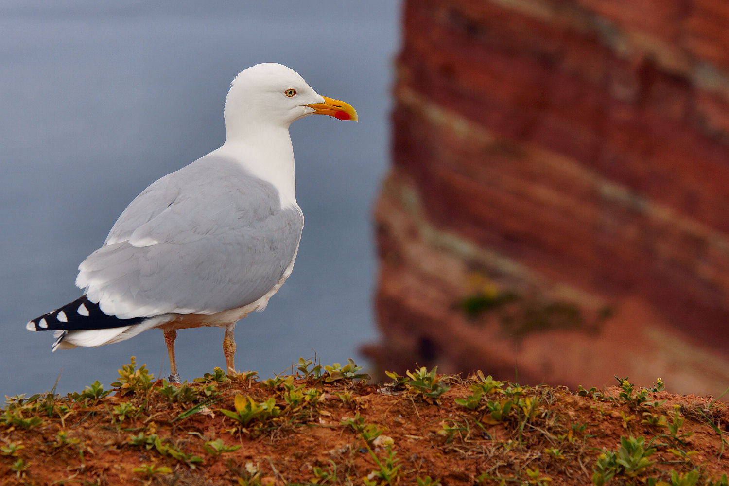Insgesamt haben wir den Klippenrandweg in der einen Woche Helgoland wohl ein dutzendmal umrundet. Trotzdem war jede Runde irgendwie einzigartig. Jedes mal gab es etwas anderes zu bestaunen. Auf der ei, welches das Rot der Felsen betonte. Auf der nächsten war es der Wind, in dem sich die Basstölpel wunderschön bewegten. Oder es war, wie auf diesem Bild zu sehen, eine Möwe, der man sich auf nur wenige Schritte Abstand nähern konnte.